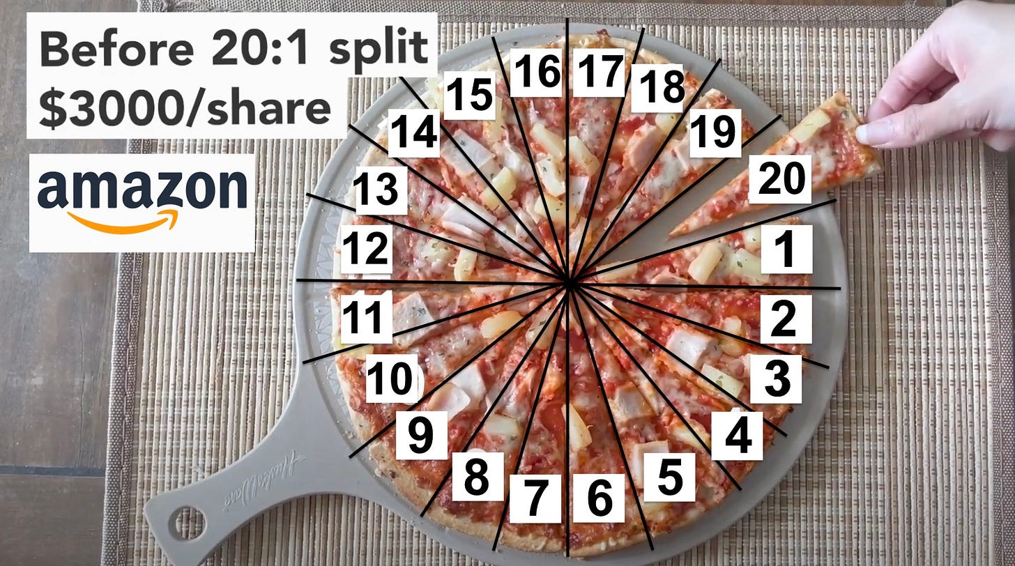 The 20:1 stock split “slices” Amazon shares into 20 pieces.